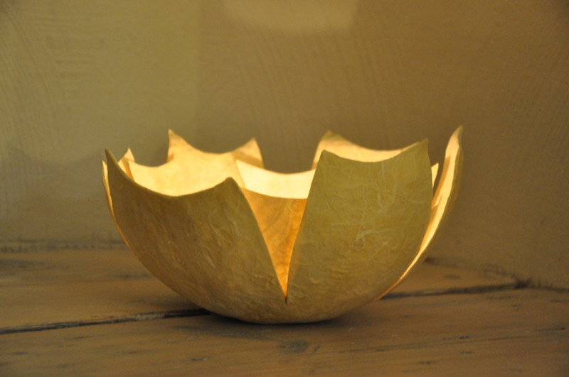 Aus Naturpapieren fertige ich Lichtschalen, die die besonderen